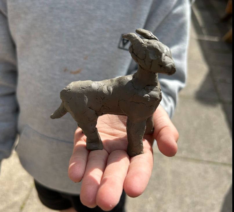 This fantastic clay sculpture was made by a pupil from Cannington Primary School, and was inspired by his favourite animal of the visit – Buttercup the Boer Goat!